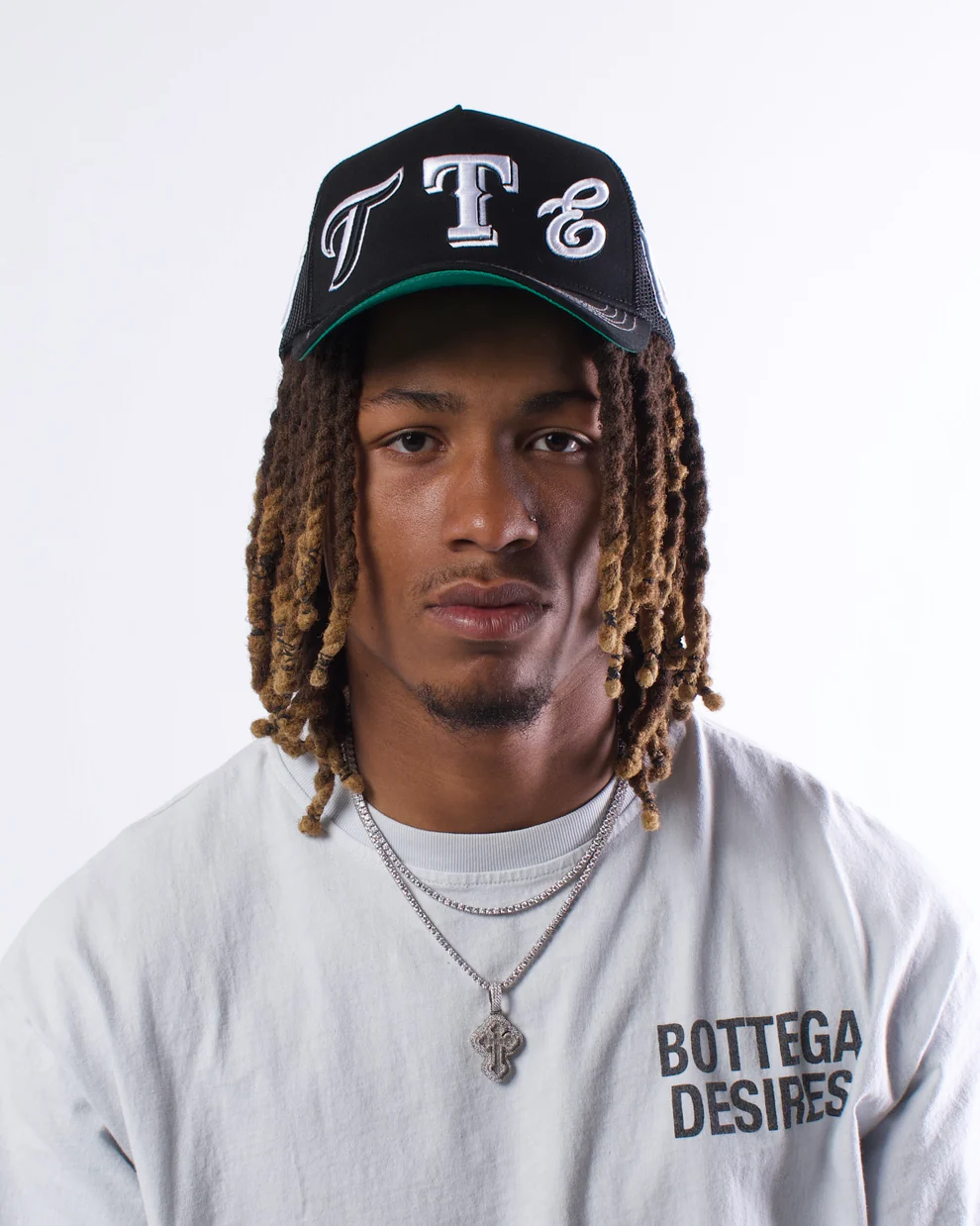 The Bottega Desires Trucker Hat (Oreo) delivers a clean monochrome streetwear look with bold white embroidered lettering across the front and sides. Built with a breathable mesh back and structured front panel, this hat offers the perfect balance of comfort and durability. Its black-and-white “Oreo” colorway gives it a sharp, versatile style that pairs effortlessly with any outfit. Finished with premium stitching and signature Bottega Desires detailing, it’s the perfect accessory for standout everyday wear.